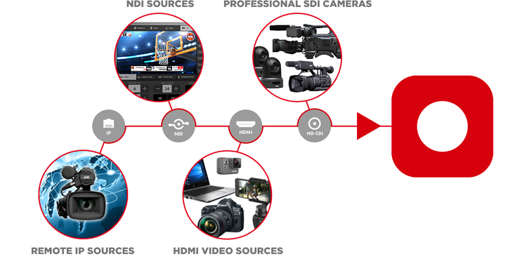 连接任何专业摄像机,使用IP视频流,NDI源,笔记本电脑演示,行动摄像头,无人机,智能手机…